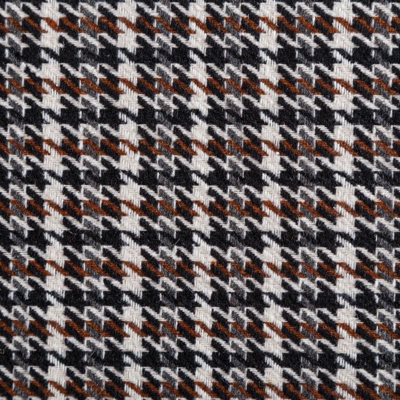 Твид молочного оттенка с плетеной матовой поверхностью, мелкий узор "гусиная лапка" образуется переплетением серых, коричневых и черных нитей. Ткань не сухая, мягкая, но плотная, не просвечивает, теплая, хоршо драпируется. Отлично подойдет для пошива легкой верхней одежды, жакетов, костюмов, юбок.