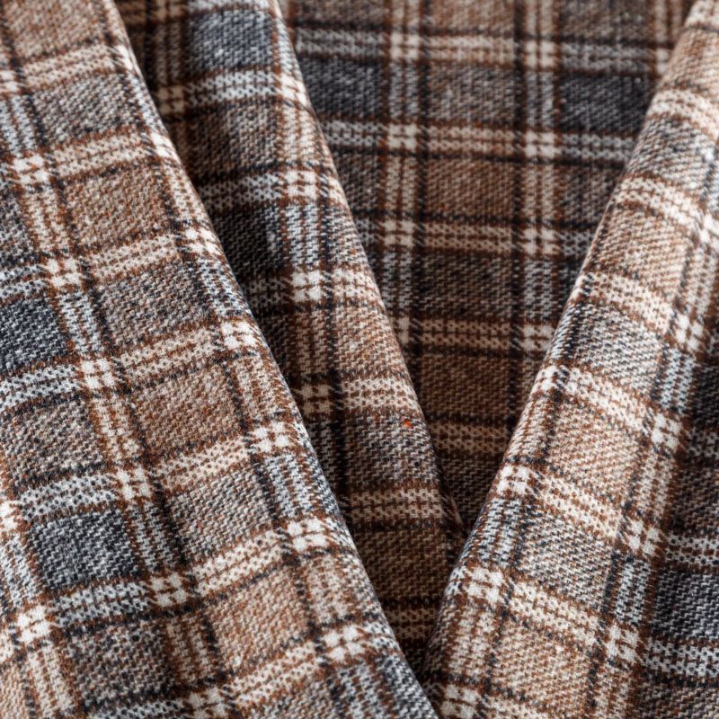 Фактурная и плотная твидовая ткань с добавлением хлопка в красивую серо-бежевую клетку. Ткань мягкая, пластичная, приятная на ощупь. Хорошо драпируется и образует формоустойчивые складки. Твид отлично подходит для пошива костюмов, пальто, пиджаков, брюк и курток, юбок, жилетов, головных уборов в классическом стиле.