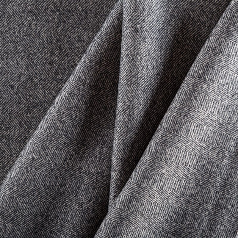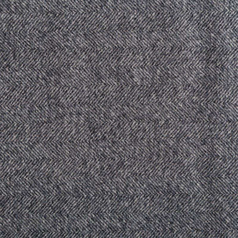 Итальянский шерстяной твид в ёлочку в классическом сером оттенке. Ткань выглядит дорого и статусно, хорошей плотности, в меру тяжёлая, пластичная, не мнется, приятная на ощупь, при драпировке образует красивую округлую складку. Подойдёт для пошива жакета, юбки, брюк, платья, легкого пальто, бомбера, мужского костюма или пальто.