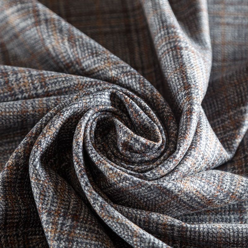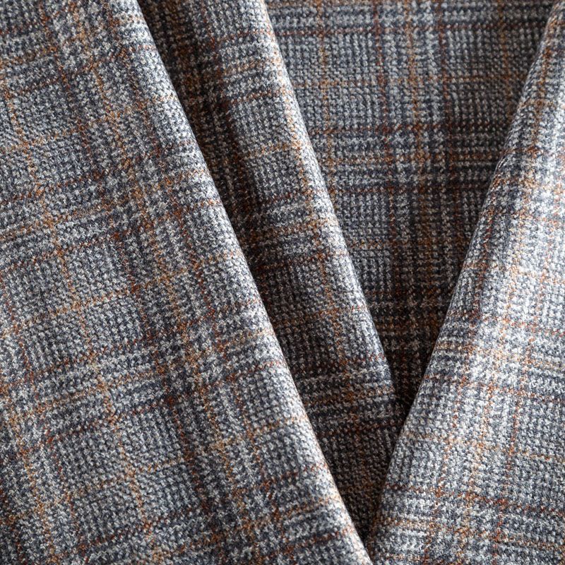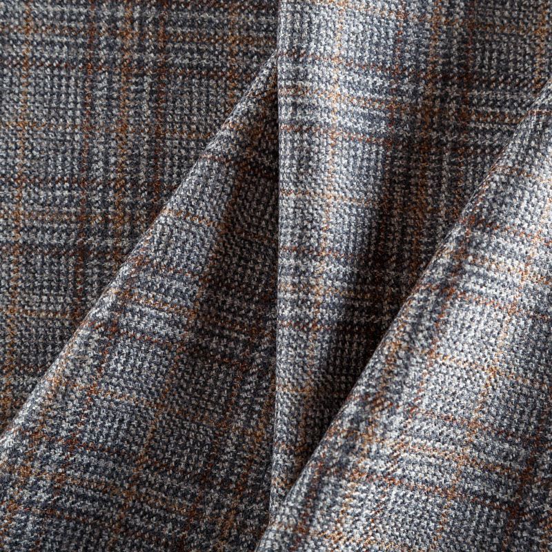 Итальянская кашемировая твидовая ткань серого оттенка. Сочетание линий белого, коричневого и темно-серого оттенков образует красивую клетку. Ткань мягкая, пластичная, приятная на ощупь, поверхность фактурная. Хорошо драпируется и образует формоустойчивые складки. Твид отлично подходит для пошива костюмов, пальто, пиджаков, брюк и курток, юбок, жилетов, головных уборов в классическом стиле.