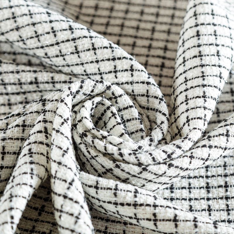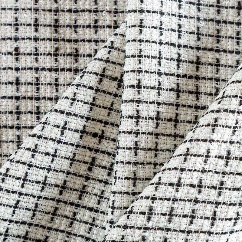 Мягкая, пластичная и объемная ткань, с разреженной и рельефной вывязанной структурой. Буклированный твид в стиле Шанель буквально соткан из различных по толщине и текстуре нитей, образующих рисунок в виде клетки. Твид идеально подходит для пошива платьев, юбок, жакетов, легких пальто, эффектных бомберов и курток.