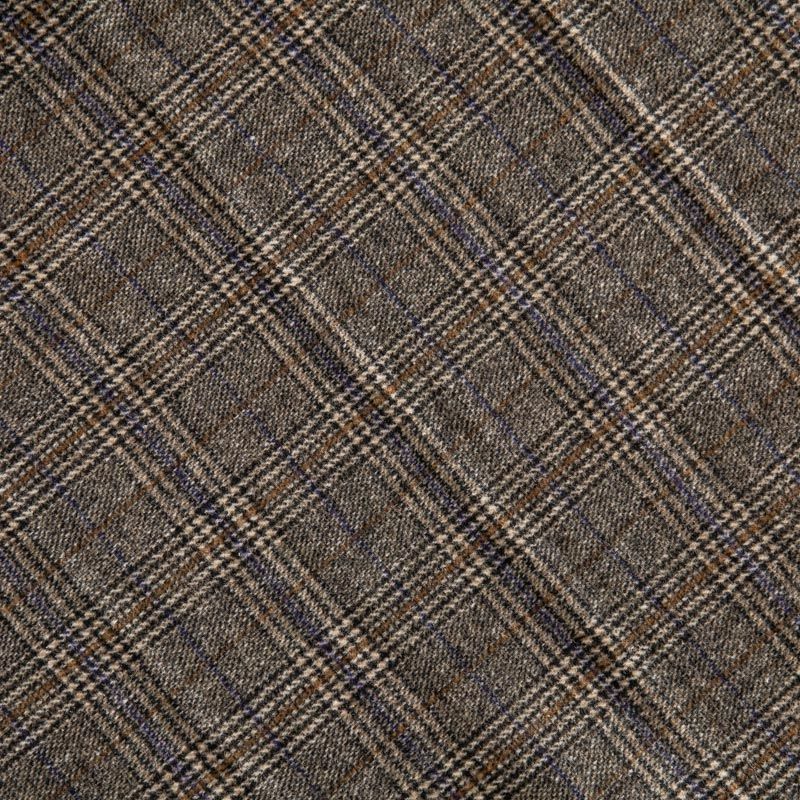 Фактурная и плотная твидовая ткань с добавлением натуральной шерсть в красивую и сложную клетку тартан. Материал саржевого переплетения, слегка шероховатый на ощупь. Хорошо драпируется и образует формоустойчивые складки. Ткань отлично подходит для пошива костюмов, пальто, пиджаков, брюк и курток, юбок, жилетов, головных уборов в классическом стиле.