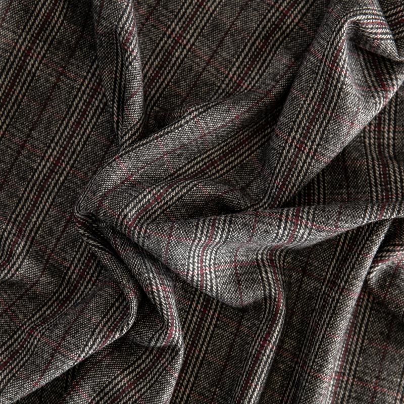 Фактурная и плотная твидовая ткань с добавлением натуральной шерсть в красивую и сложную клетку тартан. Материал саржевого переплетения, слегка шероховатый на ощупь. Хорошо драпируется и образует формоустойчивые складки. Ткань отлично подходит для пошива костюмов, пальто, пиджаков, брюк и курток, юбок, жилетов, головных уборов в классическом стиле.