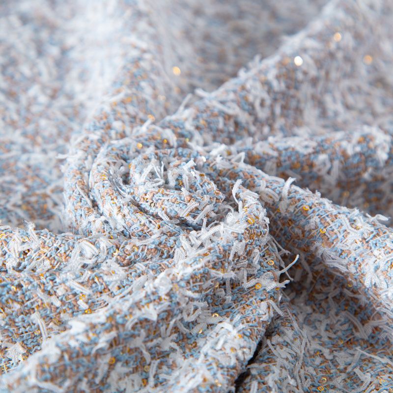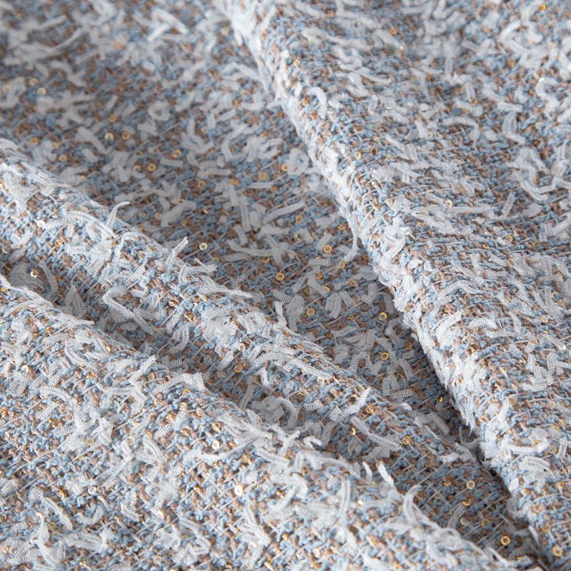 Твид с пайетками 052-20212 бежево-голубой в Норильске