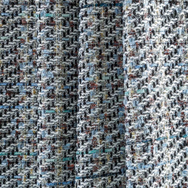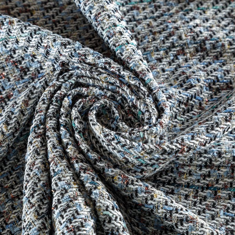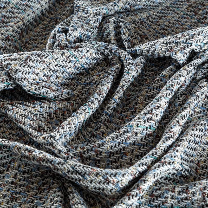 Переплетение разноцветных нитей делает эту ткань универсальной, и в тоже время оригинальной. Полотно плотное, но очень мягкое. Теплое, комфортное. Плетение рыхлое, поверхность фактурная, поэтому изделия выглядят достаточно объемно. Подойдет для пошива костюмов с юбкой, жакетов, облегченных пальто.