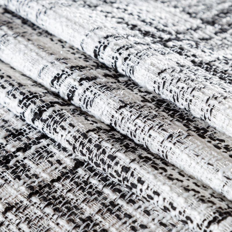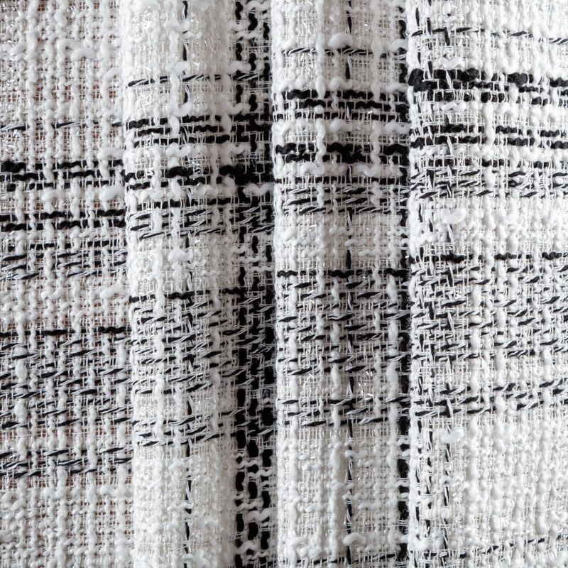 Мягкая, пластичная и объемная ткань, с разреженной и рельефной вывязанной структурой. Буклированный твид в стиле Шанель буквально соткан из различных по толщине и текстуре нитей, образующих рисунок в виде клетки. В плетение добавлена блестящая люрексная нить. Твид идеально подходит для пошива платьев, юбок, жакетов, легких пальто, эффектных бомберов и курток.