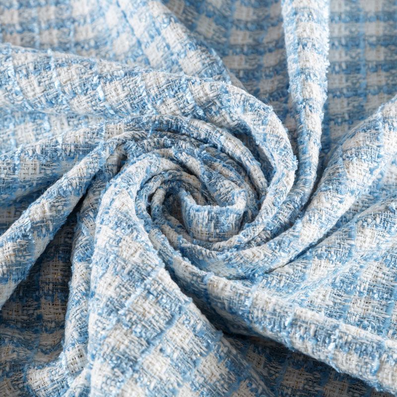 Мягкая, пластичная и объемная ткань, с разреженной и рельефной вывязанной структурой. Буклированный твид в стиле Шанель буквально соткан из различных по толщине и текстуре нитей, образующих рисунок в виде клетки. В плетение добавлена блестящая люрексная нить. Твид идеально подходит для пошива платьев, юбок, жакетов, легких пальто, эффектных бомберов и курток.