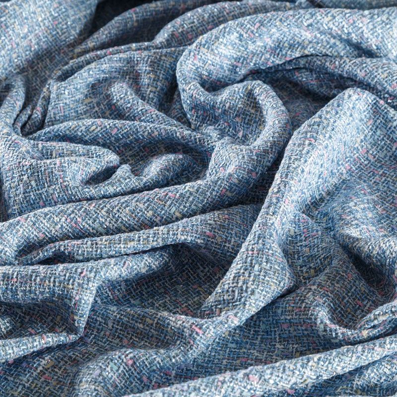 Переплетение разноцветных нитей делает эту ткань универсальной, и в тоже время оригинальной. Полотно средней плотности, очень мягкое, теплое и комфортное. Плетение рыхлое, поверхность фактурная, поэтому изделия выглядят достаточно объемно. Подойдет для пошива костюмов с юбкой, жакетов, облегченных пальто, кардиганов, жилетов, шорт.