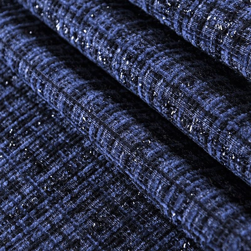 Мягкая, пластичная и объемная ткань, с разреженной и рельефной вывязанной структурой. Буклированный твид в стиле Шанель буквально соткан из различных по толщине и текстуре нитей, образующих рисунок в виде клетки. В плетение добавлена блестящая люрексная нить. Твид идеально подходит для пошива платьев, юбок, жакетов, легких пальто, эффектных бомберов и курток.