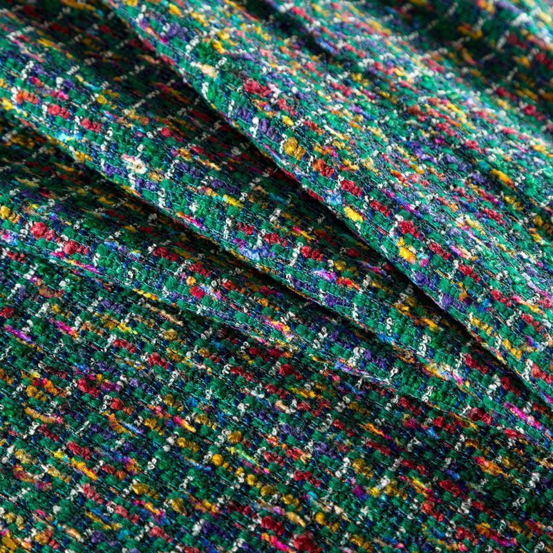 Переплетение разноцветных нитей делает эту ткань универсальной, и в тоже время оригинальной. Полотно плотное, но очень мягкое. Теплое, комфортное. Плетение не рыхлое, поверхность фактурная, поэтому изделия выглядят достаточно объемно. Подойдет для пошива костюмов с юбкой, жакетов, облегченных пальто.