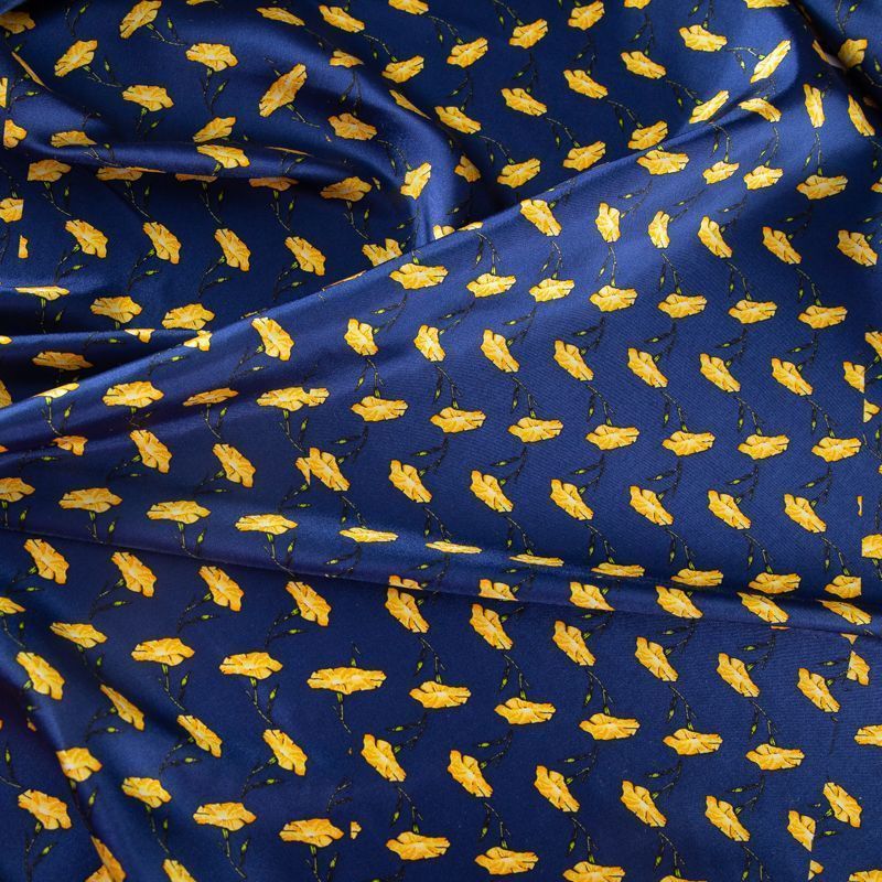 Твил-шелк натуральный купон (крой) 064-19919 синий принтованный в Норильске