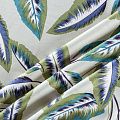 Качественный твил-штапель с крупным растительным принтом на спокойном фоне. Мягкая ткань средней плотности, имеет саржевое плетение и характерный диагональный рубчик на поверхности. Хорошо сохраняет форму, не сильно мнется и не деформируется в процессе эксплуатации. Красиво ложится в складки, поэтому прекрасно подойдет на длинные драпированные юбки и платья, на свободные брюки или шорты, топы.