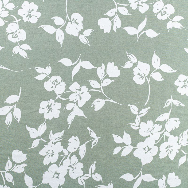 Качественный твил-штапель с белым цветочным принтом на фисташковом фоне. Мягкая ткань средней плотности, имеет саржевое плетение и характерный диагональный рубчик на поверхности. Хорошо сохраняет форму, не сильно мнется и не деформируется в процессе эксплуатации. Красиво ложится в складки, поэтому прекрасно подойдет на длинные драпированные юбки и платья, на свободные брюки или шорты, топы.