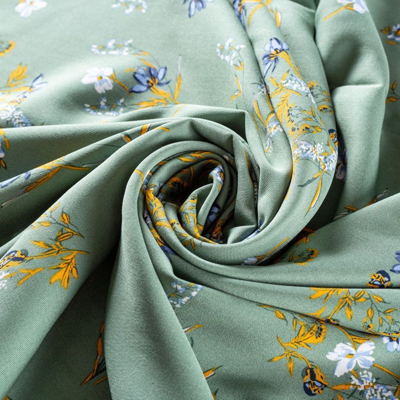 Твил-штапель 069-01573 полынный зеленый принтованный в Норильске
