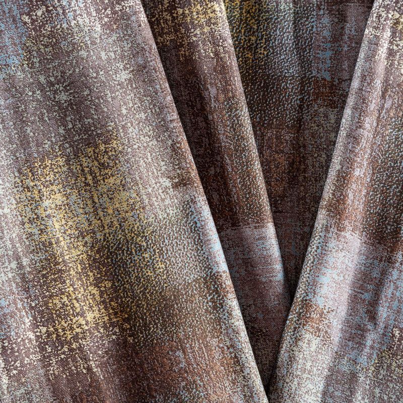 Плотная и мягкая ткань серо-голубого оттенка с абстрактным принтом, имеет саржевое плетение и характерный диагональный рубчик на поверхности. Отлично сохраняет форму, не сильно мнется и не деформируется в процессе эксплуатации. Красиво ложится в складки, поэтому прекрасно подойдет на длинные драпированные юбки и платья, на свободные брюки или шорты, топы.