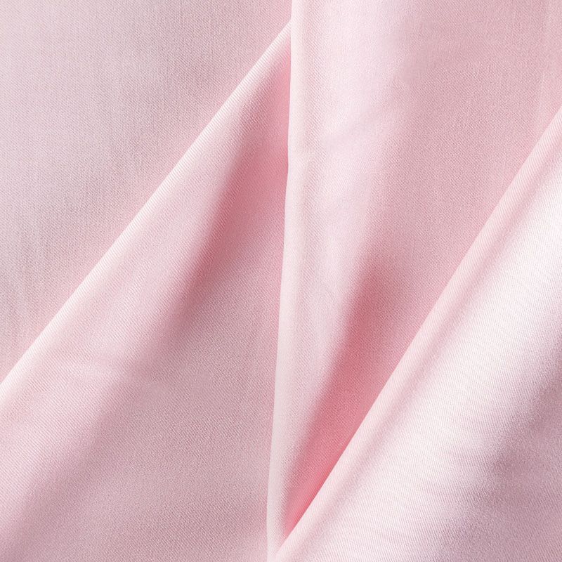 Мягкая ткань средней плотности, имеет саржевое плетение и характерный диагональный рубчик на поверхности. Отлично сохраняет форму, не сильно мнется и не деформируется в процессе эксплуатации. Красиво ложится в складки, поэтому прекрасно подойдет на длинные драпированные юбки и платья, на свободные брюки или шорты, топы.