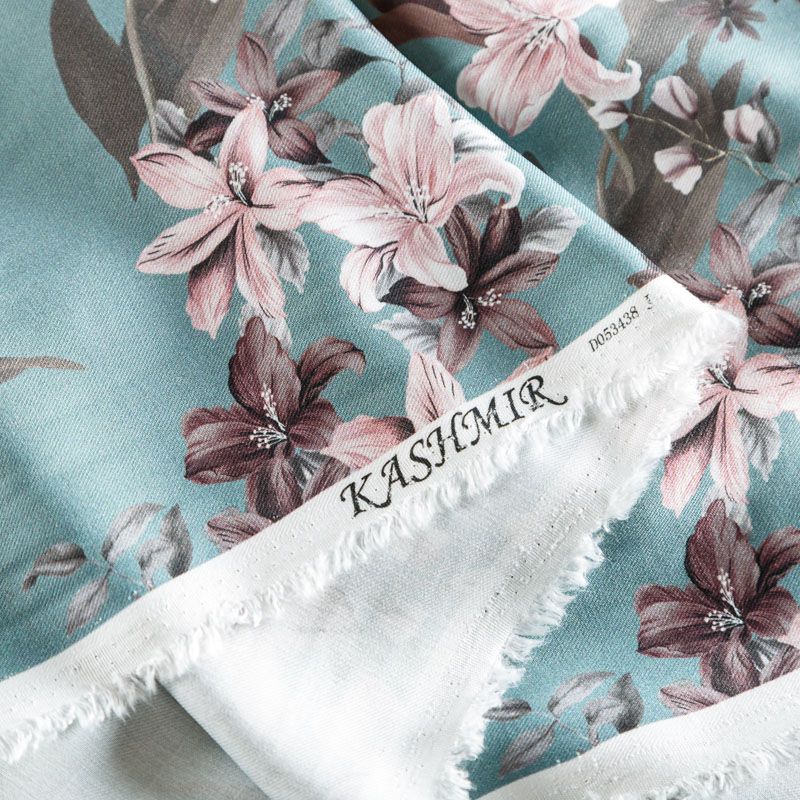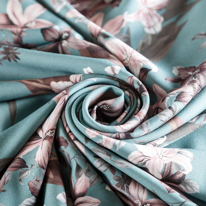 Твил-штапель 069-06479 серо-бирюзовый принтованный в Норильске