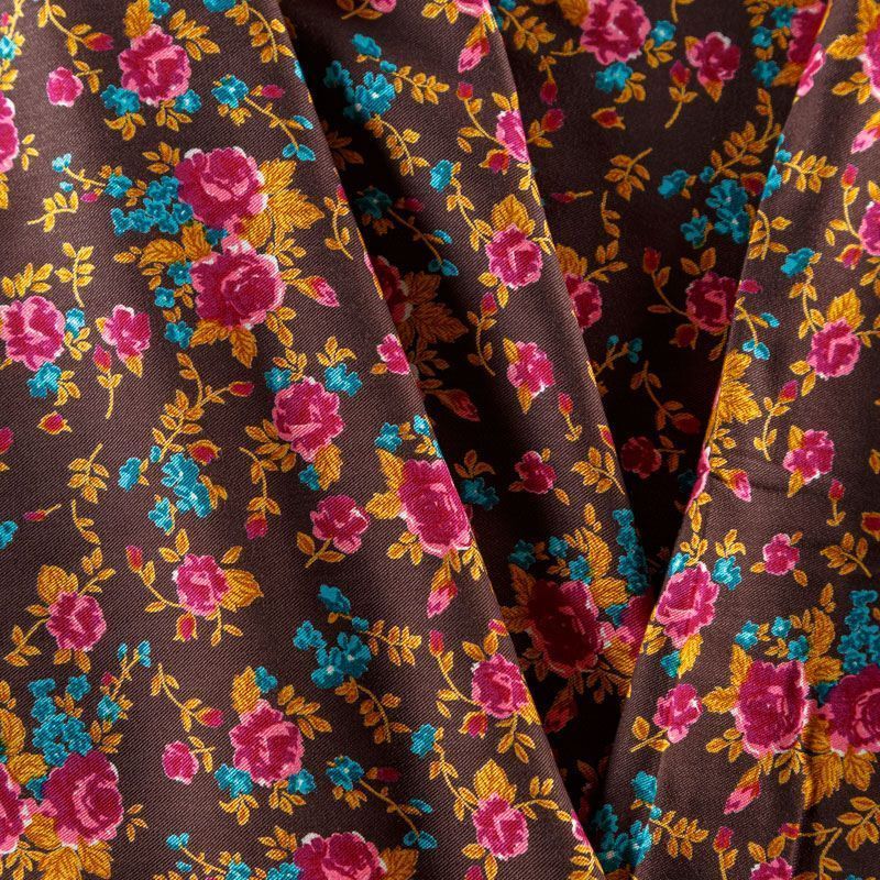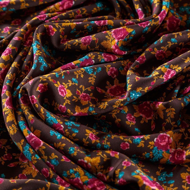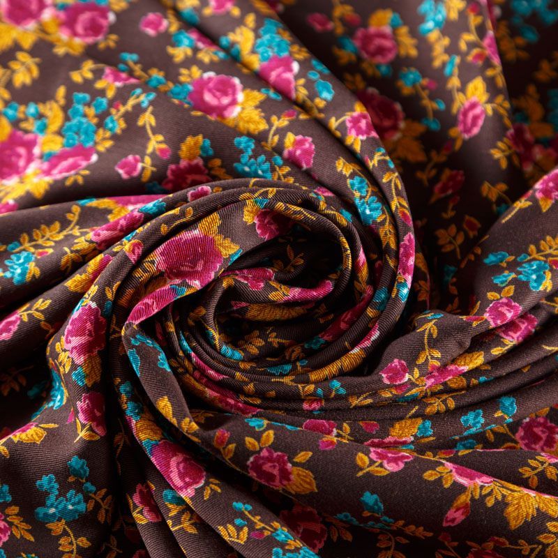 Твил-штапель 069-08289 коричневый принтованный в Норильске