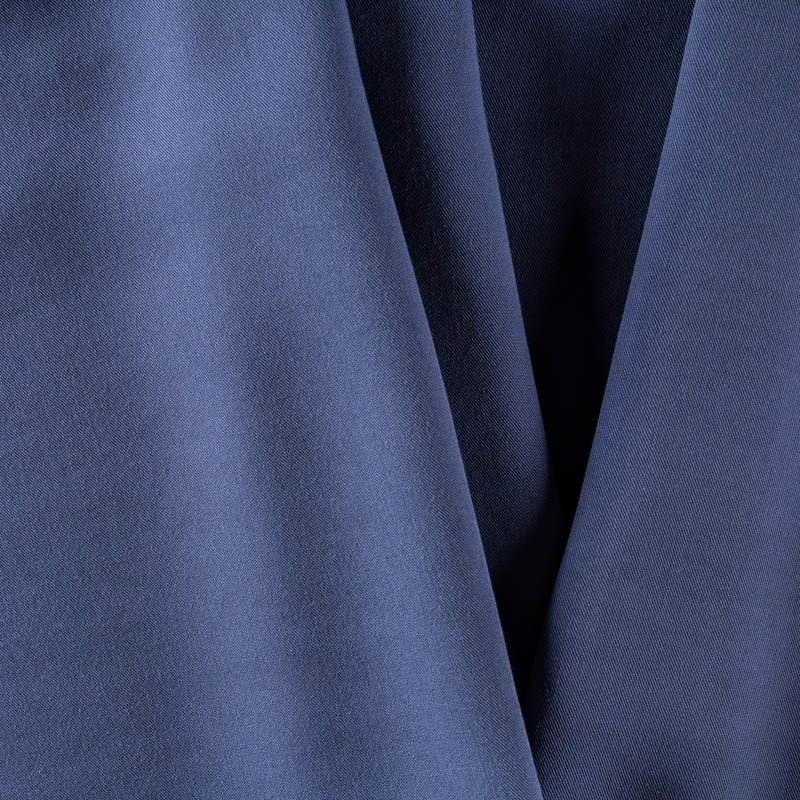 Мягкая ткань средней плотности, имеет саржевое плетение и характерный диагональный рубчик на поверхности. Отлично сохраняет форму, не сильно мнется и не деформируется в процессе эксплуатации.  Красиво ложится в складки, поэтому прекрасно подойдет на длинные драпированные юбки и платья, на свободные брюки или шорты, топы.