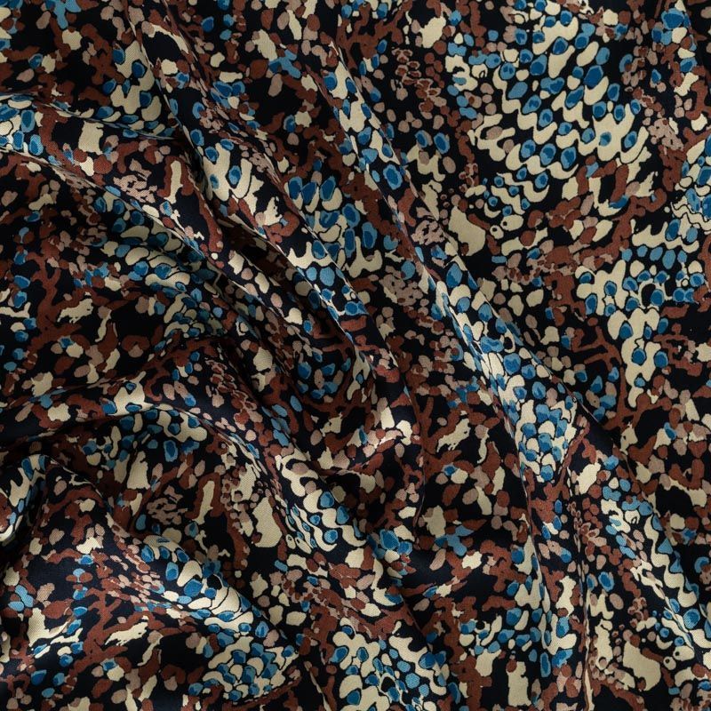 Плотная и мягкая ткань, имеет саржевое плетение и характерный диагональный рубчик на поверхности. Отлично сохраняет форму, не сильно мнется и не деформируется в процессе эксплуатации. Красиво ложиться в складки, поэтому прекрасно подойдет на длинные драпированные юбки и платья, на свободные брюки или шорты, топы.