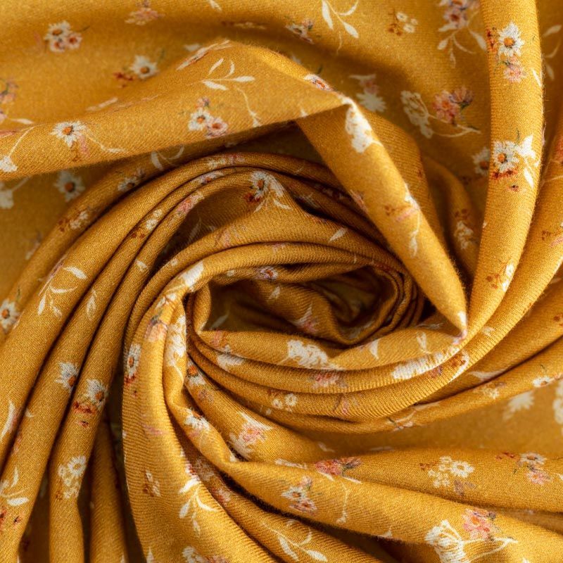Твил-штапель К36-072 горчичный принтованный в Норильске