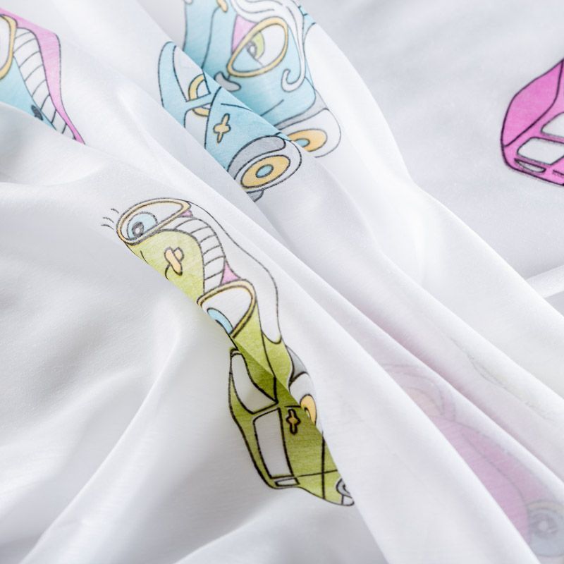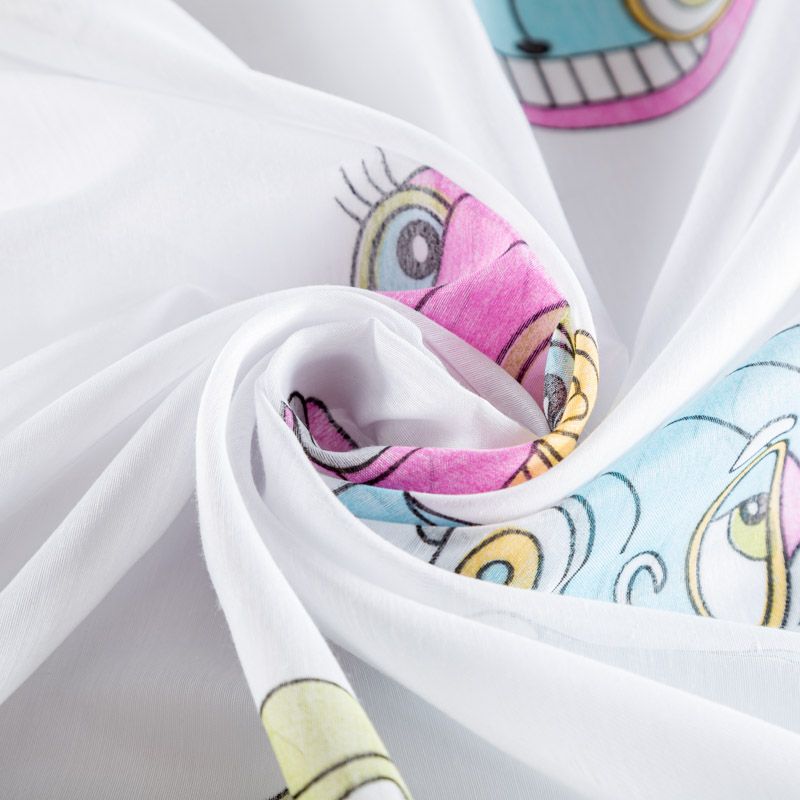 Полупрозрачный капрон с матовой поверхностью без блеска и утяжелителем по нижнему краю. Материал приятный на ощупь и очень красиво ложится в складках при драпировке. Красиво смотрится на любом карнизе и прекрасно подойдет для оформления игровых и детских комнат. Тюль капрон отлично стирается и имеет большой срок службы. Может использоваться как самостоятельно, так и в комплекте с плотными шторами.