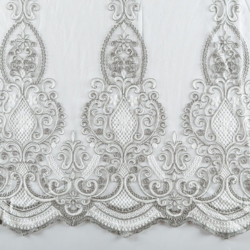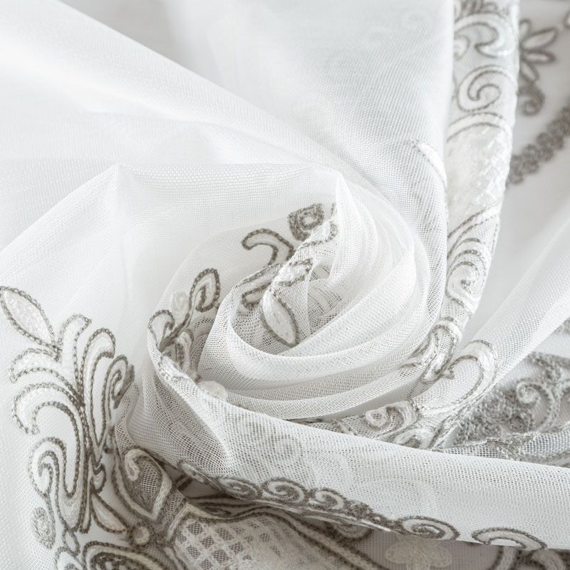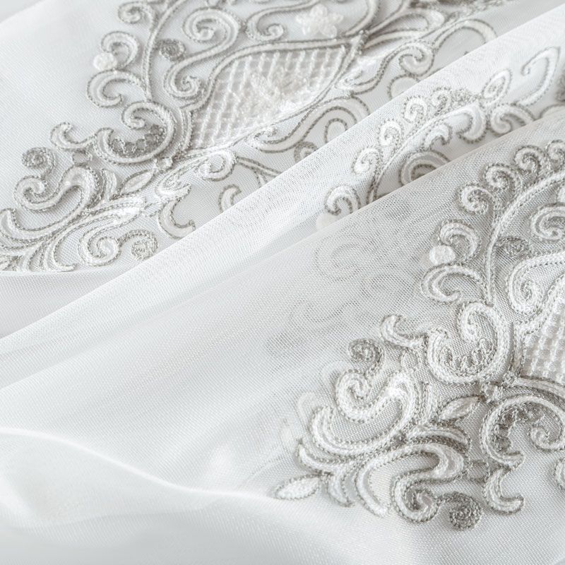 Тюль сетка с вышивкой 08-01-04653 молочный/серый