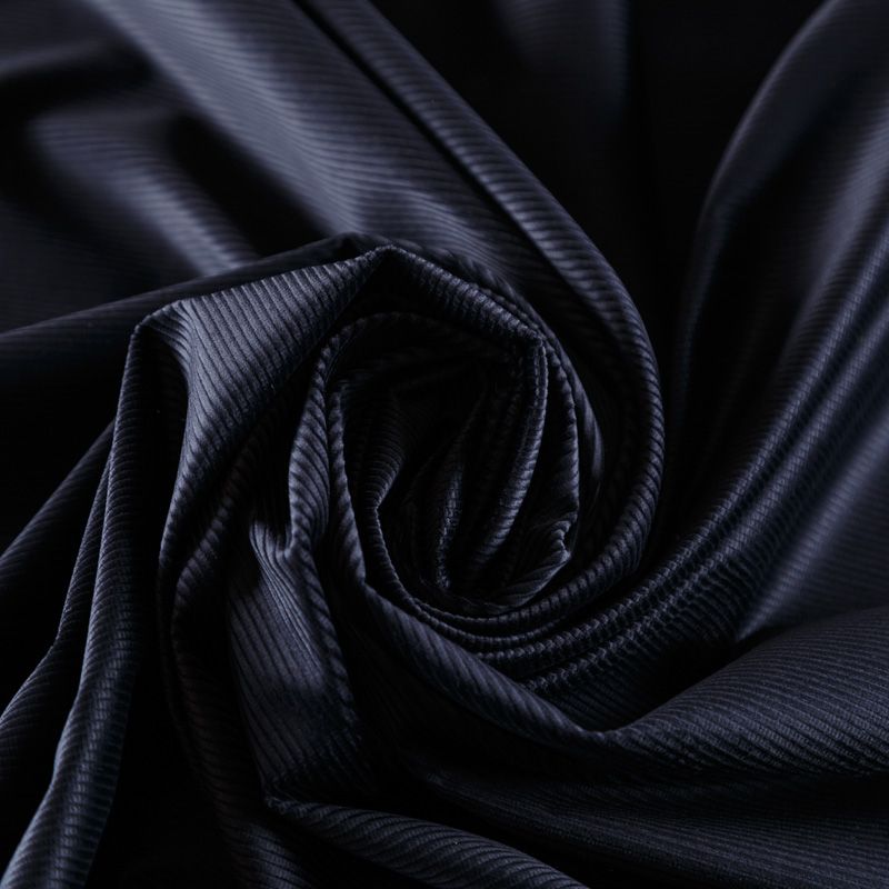 Итальянский костюмно-плательный вельвет из хлопка в черном оттенке. Очень приятный тактильно, поверхность бархатистая, рубчик средней ширины,  тянется за счет эластана в составе, не просвечивает. Подойдет для пошива костюма, платья, юбки, брюк, верхней одежды.