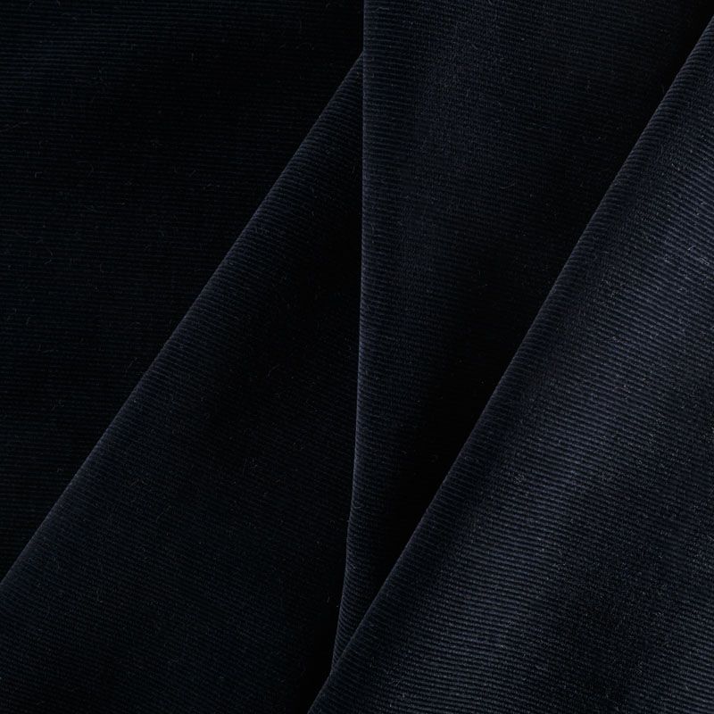 Итальянский костюмно-плательный микровельвет из хлопка в черном цвете. Очень приятный тактильно, поверхность бархатистая в тонкий рубчик, тянется за счет эластана в составе, не просвечивает. Подойдет для пошива костюма, жакета, платья, сарафана, юбки или брюк.