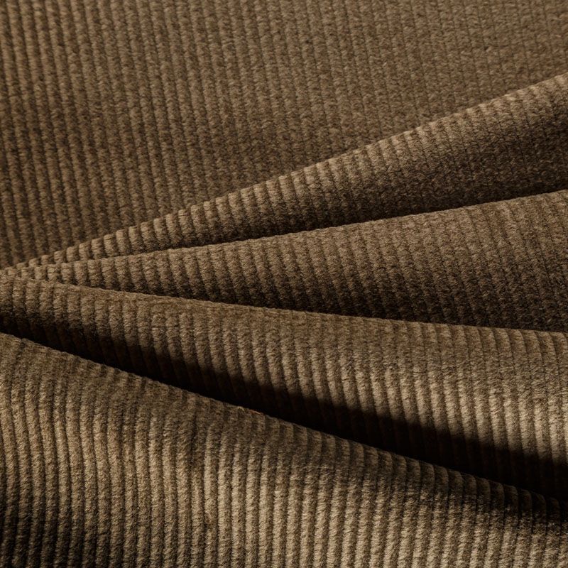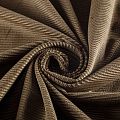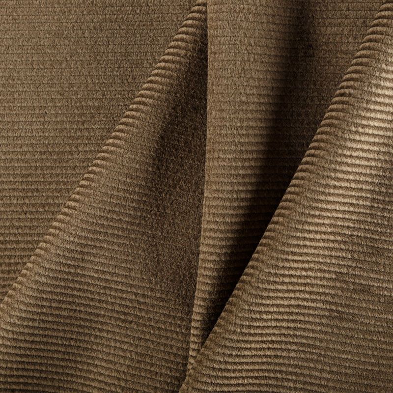 Итальянский хлопковый вельвет костюмно-плательной плотности в цвете зеленого хаки. Ткань имеет матовую фактурную поверхность в рубчик средней ширины, ворс короткий, мягкий и приятный на ощупь. Тянется за счет эластана в составе, хорошо драпируется и держит форму. Прекрасный вариант для пошива костюма, юбки, широких брюк, шорт, комбинезона, жакета, куртки или тренча.