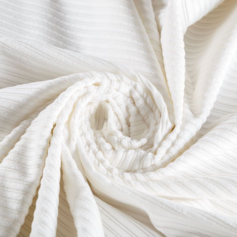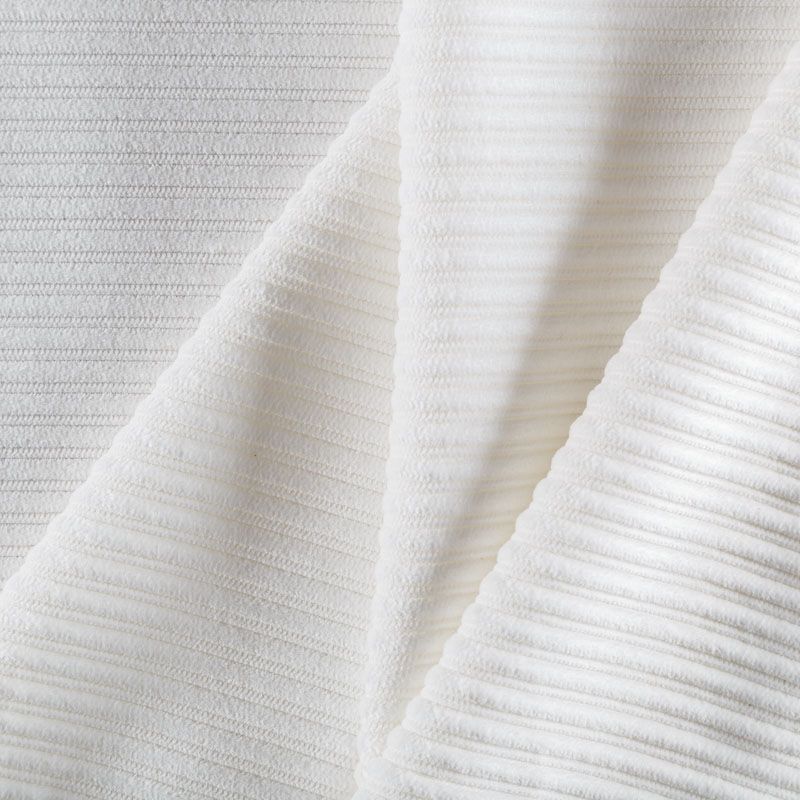 Итальянский костюмно-плательный вельвет из хлопка в молочном цвете. Очень приятный тактильно, поверхность бархатистая в широкий мягкий рубчик, немного тянется за счет эластана в составе, не просвечивает. Подойдет для пошива костюма, жакета, платья, сарафана, юбки или брюк.