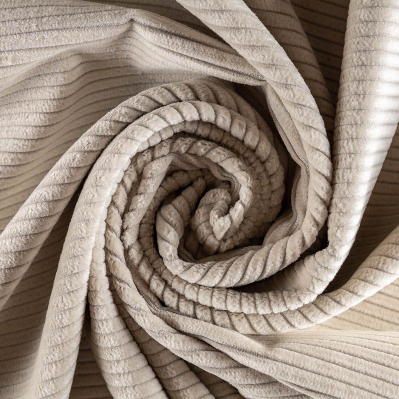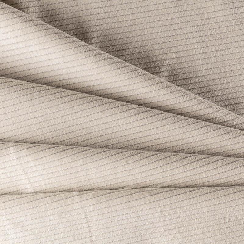 Итальянский костюмно-плательный вельвет из хлопка в красивом молочном оттенке. Очень приятный тактильно, поверхность бархатистая, рубчик средней ширины, не тянется, не просвечивает. Подойдет для пошива костюма, куртки, жакета, платья, юбки, брюк или шорт.