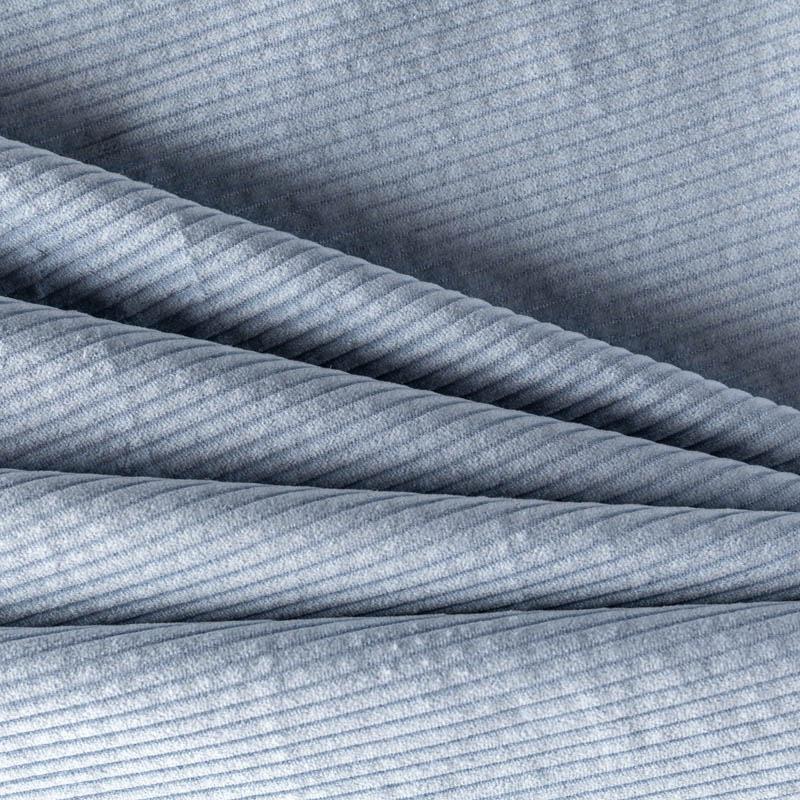 Костюмно-плательный вельвет из хлопка в красивом холодном оттенке голубого цвета. Очень приятный тактильно, поверхность бархатистая, рубчик средней ширины, не тянется, не просвечивает. Подойдет для пошива костюма, платья, юбки, брюк.