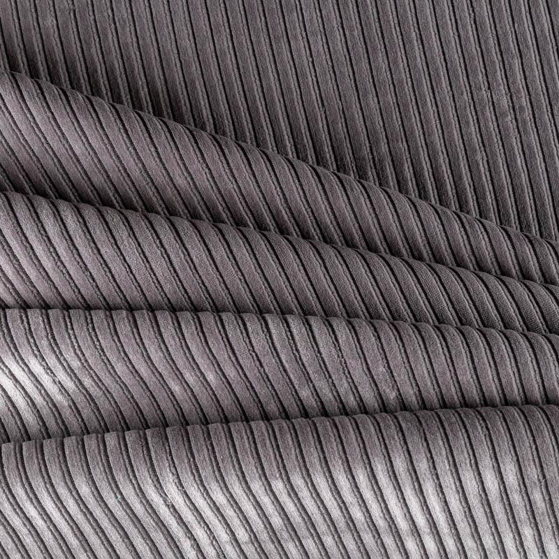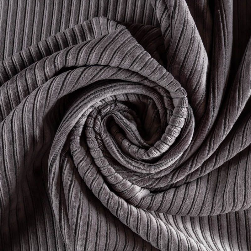 Костюмно-плательный вельвет на трикотажной смесовой основе в  сложном сером оттенке. Очень приятный тактильно, плотный, поверхность бархатистая в широкий рубчик, тянется, не просвечивает. Подойдет для пошива костюма, жакета, платья, сарафана, юбки или брюк.