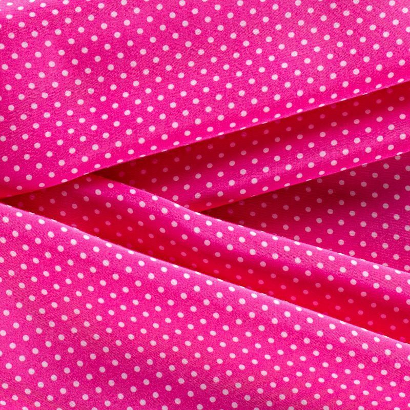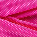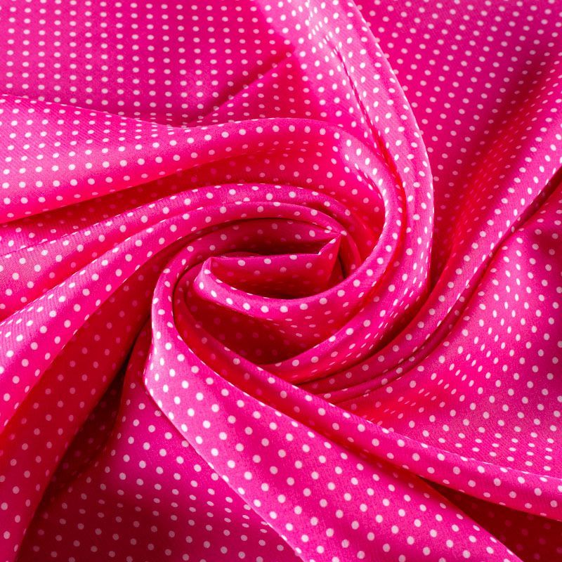 Плательно-рубашечная итальянская вискоза ярко-розового оттенка с принтом в мелкий горошек. Натуральная, дышащая ткань, очень приятная к телу, отлично драпируется, струится, не просвечивает. Хорошо подойдет для пошива платьев, рубашек, платьев-рубашек, блуз, юбок, брюк, летних костюмов, пыльников, детской одежды.