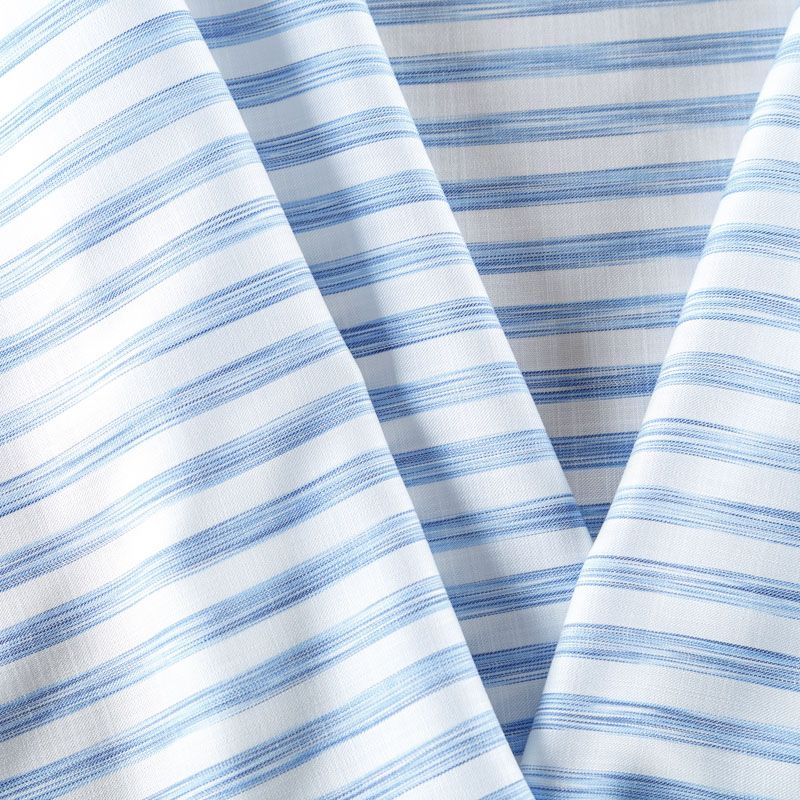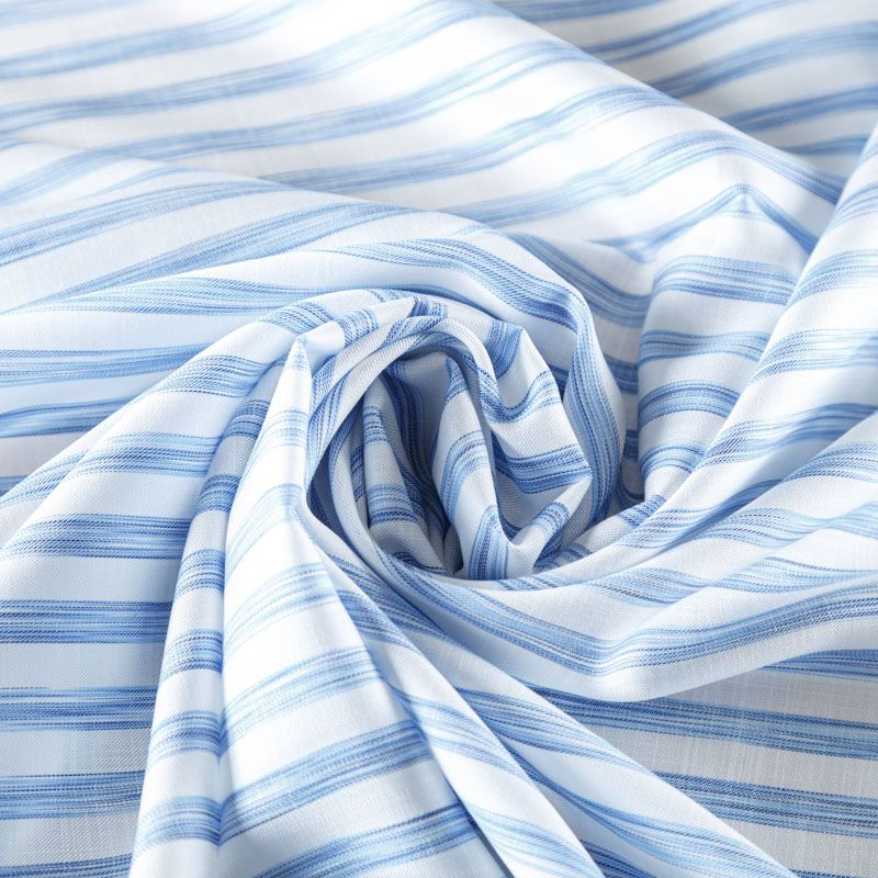 Итальянская вискоза белого оттенка в голубую меланжевую полоску. Ткань тонкая, но не просвечивает, отлично драпируется и струится, приятная на ощупь. Прекрасно подойдет для пошива платья, сарафана, топа, блузки, юбки, пижамного костюма.
