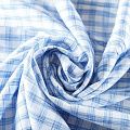Итальянская вискоза белого оттенка в голубую меланжевую клетку. Ткань тонкая, но не просвечивает, отлично драпируется и струится, приятная на ощупь. Прекрасно подойдет для пошива платья, сарафана, топа, блузки, юбки, пижамного костюма.