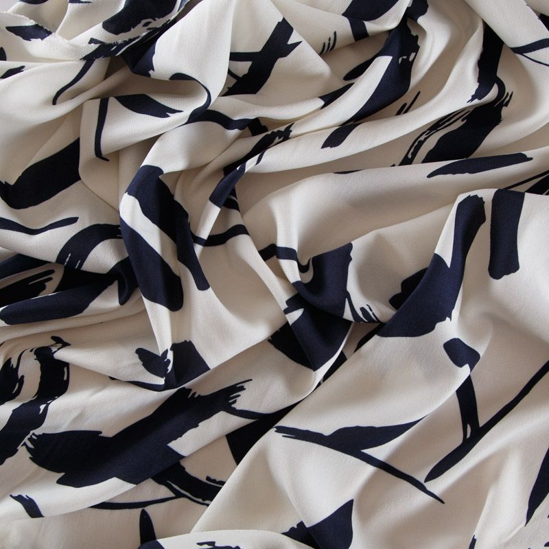 Итальянская креповая вискоза плательно-блузочной плотности из коллекции Hugo Boss в молочном оттенке с абстрактным контрастным принтом. Ткань имеет шероховатую, зернистую фактуру, мягкая и пластичная, слегка прослеживается силуэт. Не тянется, но пружинит за счет плетения. Подойдет для пошива блузки, платья, юбки, брюк свободного кроя.