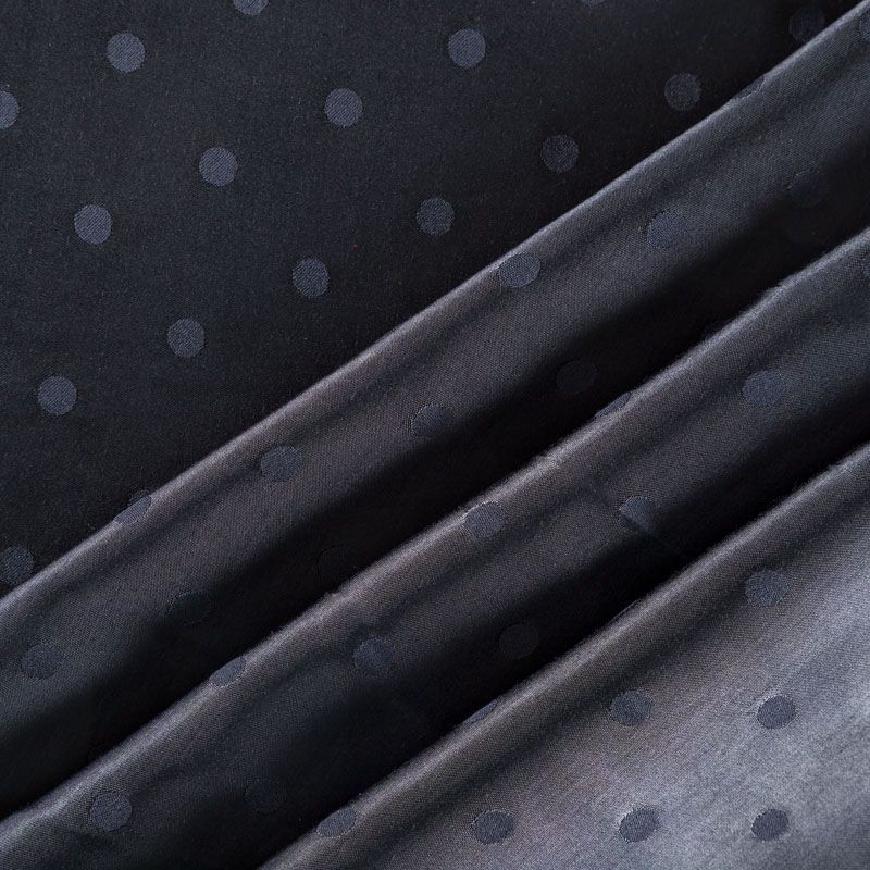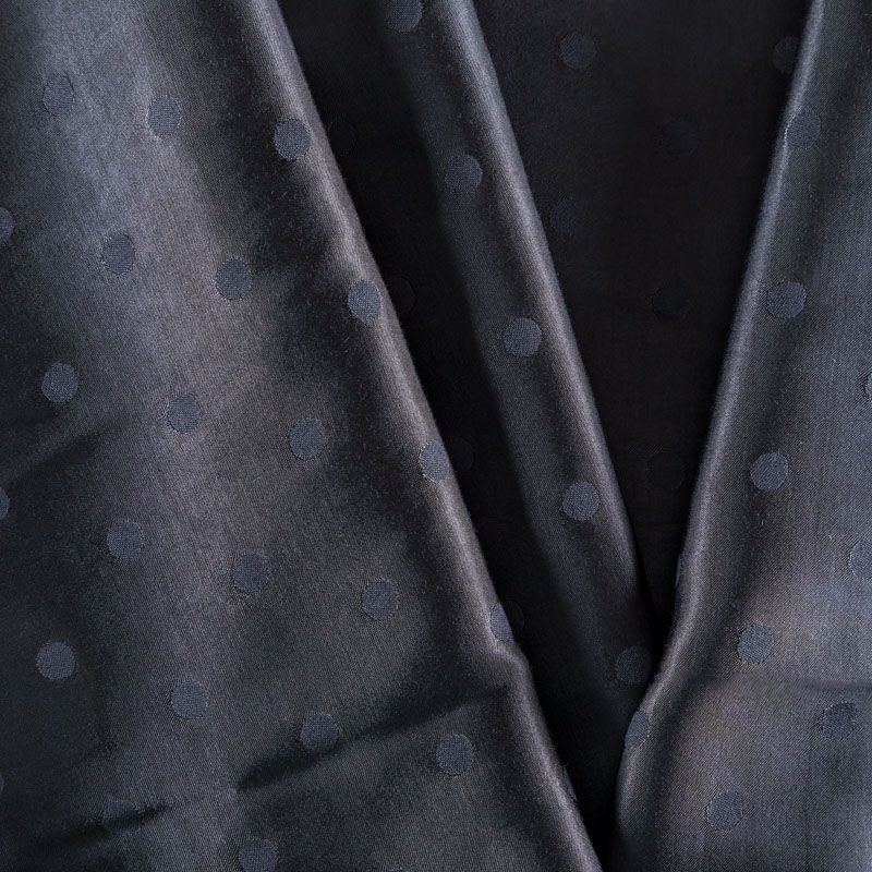 Атласная жаккардовая вискоза черного оттенка. Ткань плотная, но пластичная, хорошо драпируется и струится. Поверхность ткани гладкая, атласная, приятная на ощупь. Подойдет для пошива платья, сарафана, топа, блузки, рубашки, юбки, костюма в пижамном стиле, брюк свободного кроя, а также как подклад для верхней одежды.