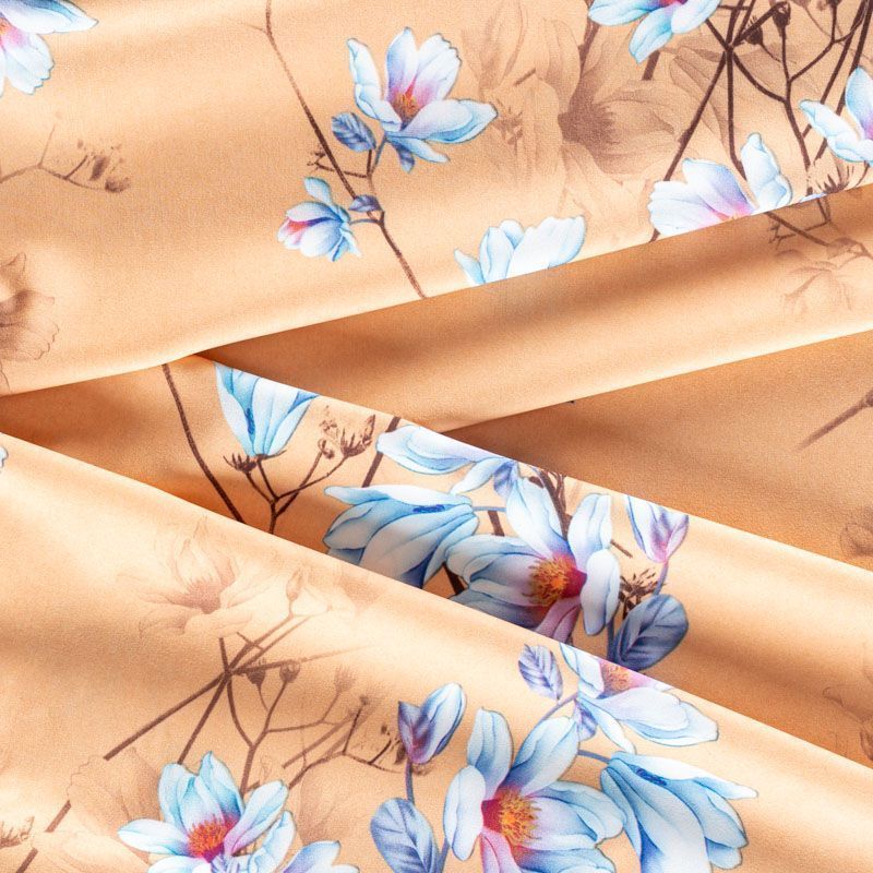 Это элегантная струящаяся ткань, которая превосходно драпируется, всегда изящно выглядит и остается легкой и воздушной,  имеет высокую прочность и большую износоустойчивость. Поверхность ткани матовая, гладкая и ровная, очень приятная на ощупь. Используется для пошива блуз, юбок, платьев, сарафанов, широких брюк.