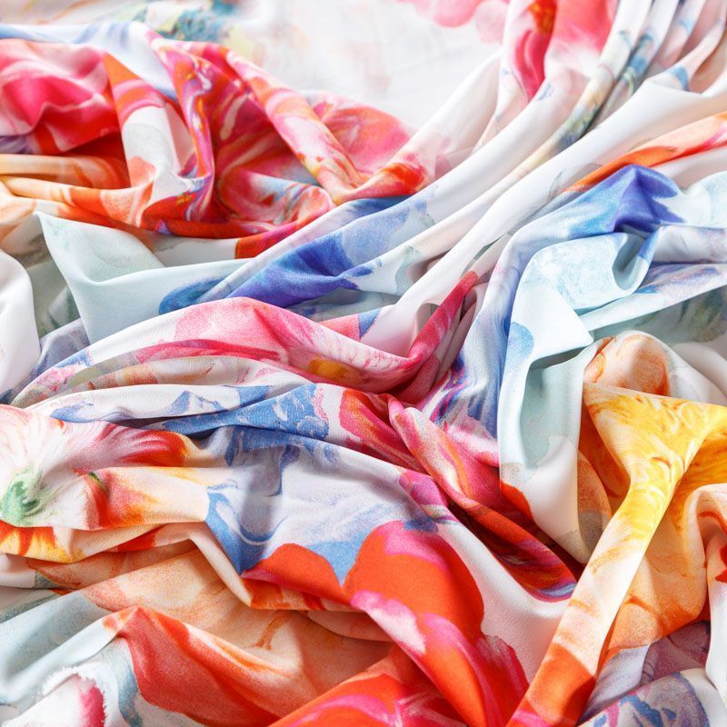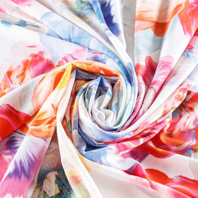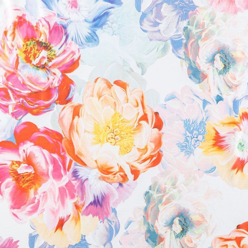 Легкая набивная ткань имеет высокую прочность, большую износоустойчивость. Материал упругий, мягкий, тянется за счет эластана в составе, хорошо драпируется, образует струящиеся складки. Идеально подойдет для пошива блуз, юбок, платьев, сарафанов.
