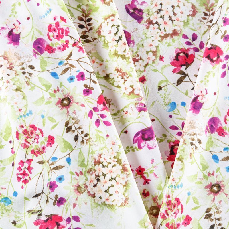 Это элегантная струящаяся ткань, которая превосходно драпируется, всегда изящно выглядит и остается легкой и воздушной,  имеет высокую прочность и большую износоустойчивость. Поверхность ткани матовая, гладкая и ровная, очень приятная на ощупь. Используется для пошива блуз, юбок, платьев, сарафанов, широких брюк.