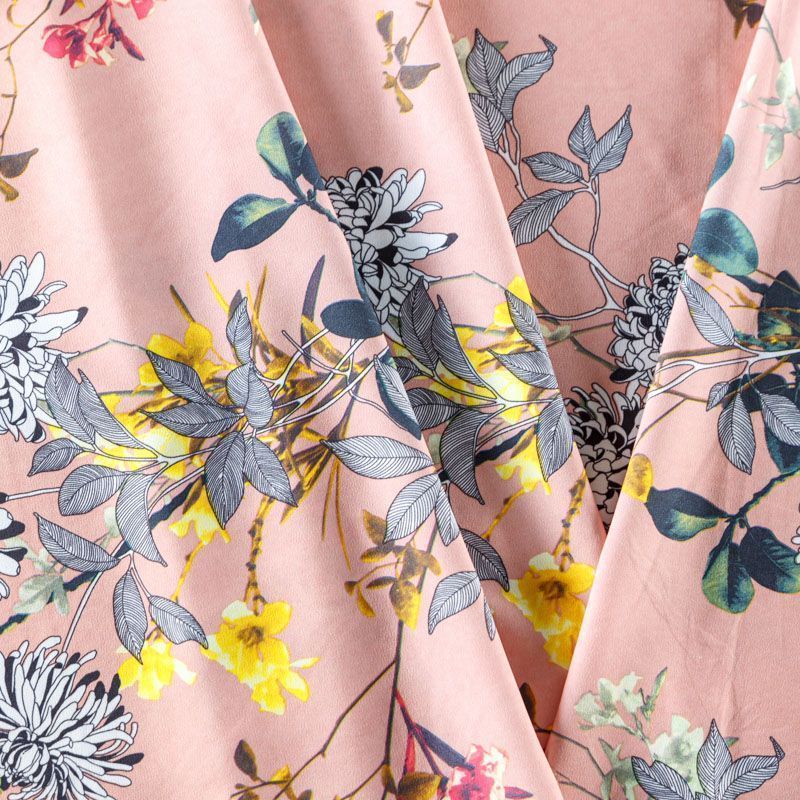 Легкая набивная ткань с цветочным принтом имеет высокую прочность, большую износоустойчивость. Ткань упругая, мягкая и хорошо драпируется, тянется за счет эластана в составе, образует струящиеся складки. Идеально подойдет для пошива блуз, юбок, платьев, сарафанов.
