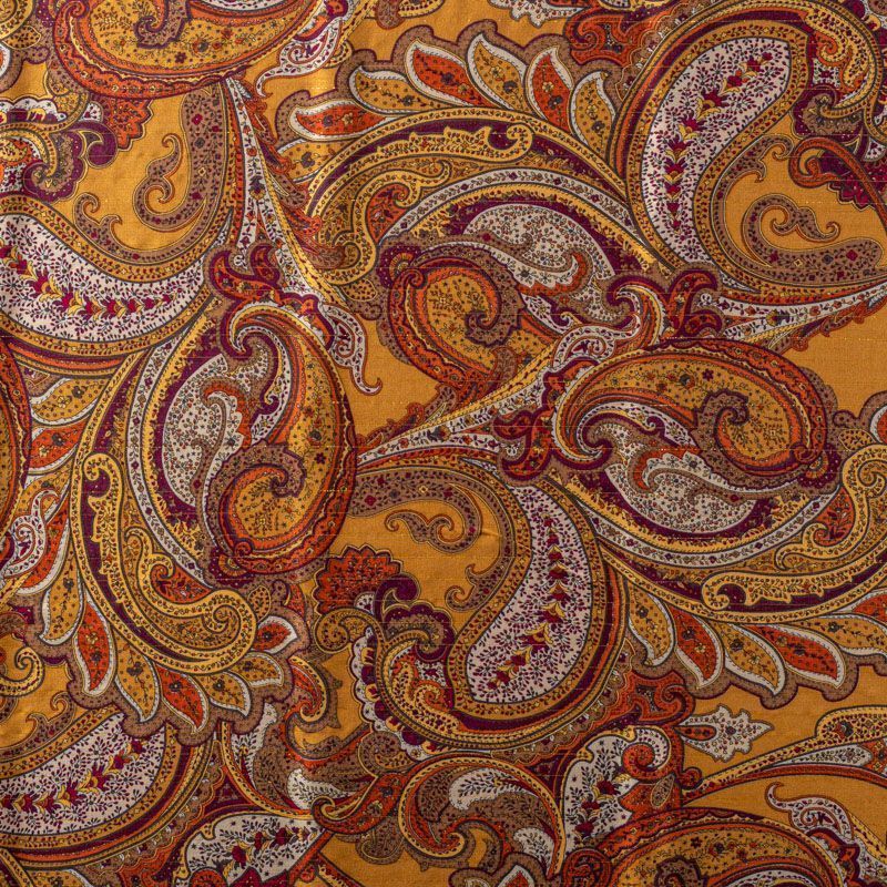 Итальянская плательно-блузочная вискоза с фантазийным растительным принтом пейсли в золотисто-коричневом оттенках декорирована тонкой люрексовой нитью. Ткань очень пластичная, отлично драпируется и струится, мягкая и приятная на ощупь, не просвечивает. Прекрасно подойдет для пошива платья, топа, блузки, юбки.