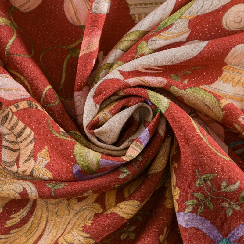 Вискоза с люрексом 009-12100 красно-терракотовый принтованный в Норильске