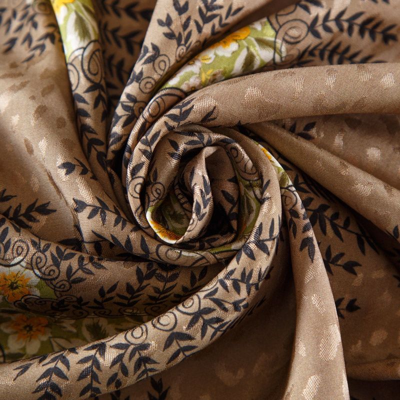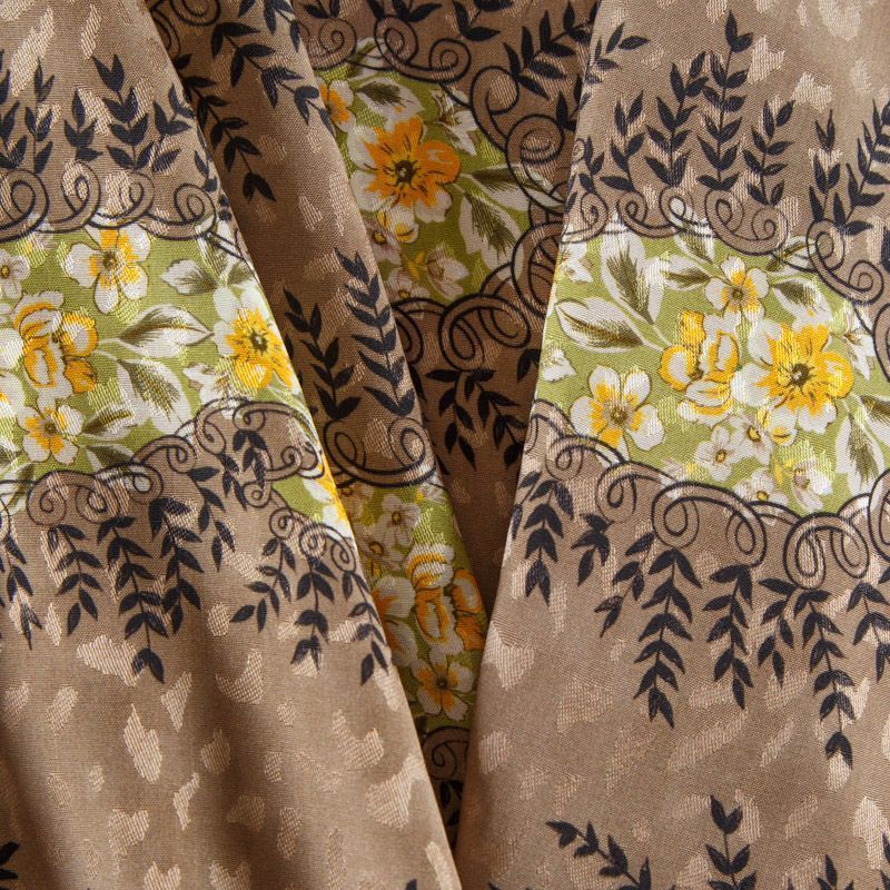 Вискоза жаккардовая 009-12327 бежевый принтованный