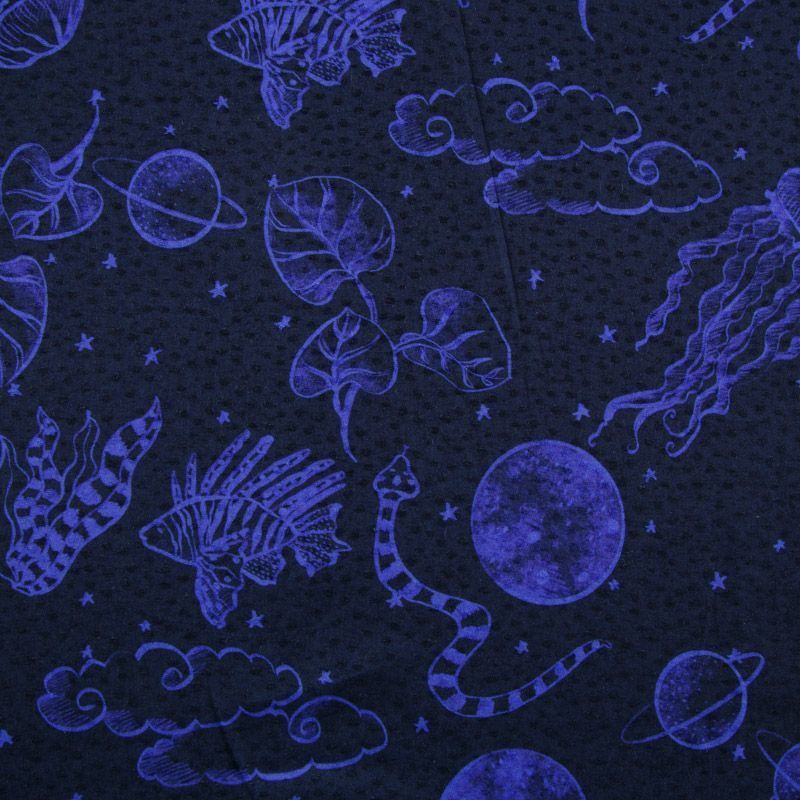 Вискоза жаккардовая 009-12337 синий космос принтованный