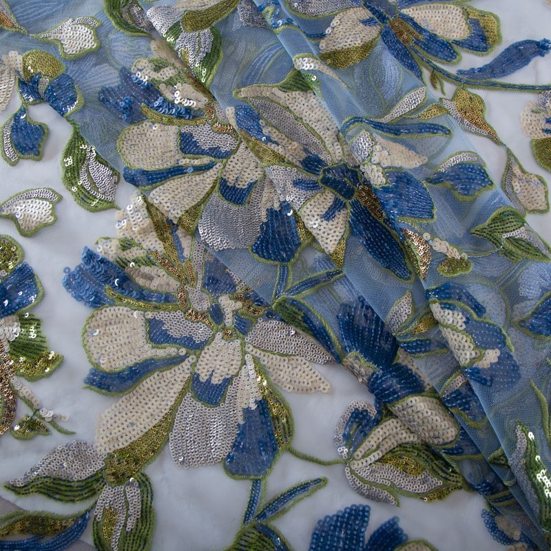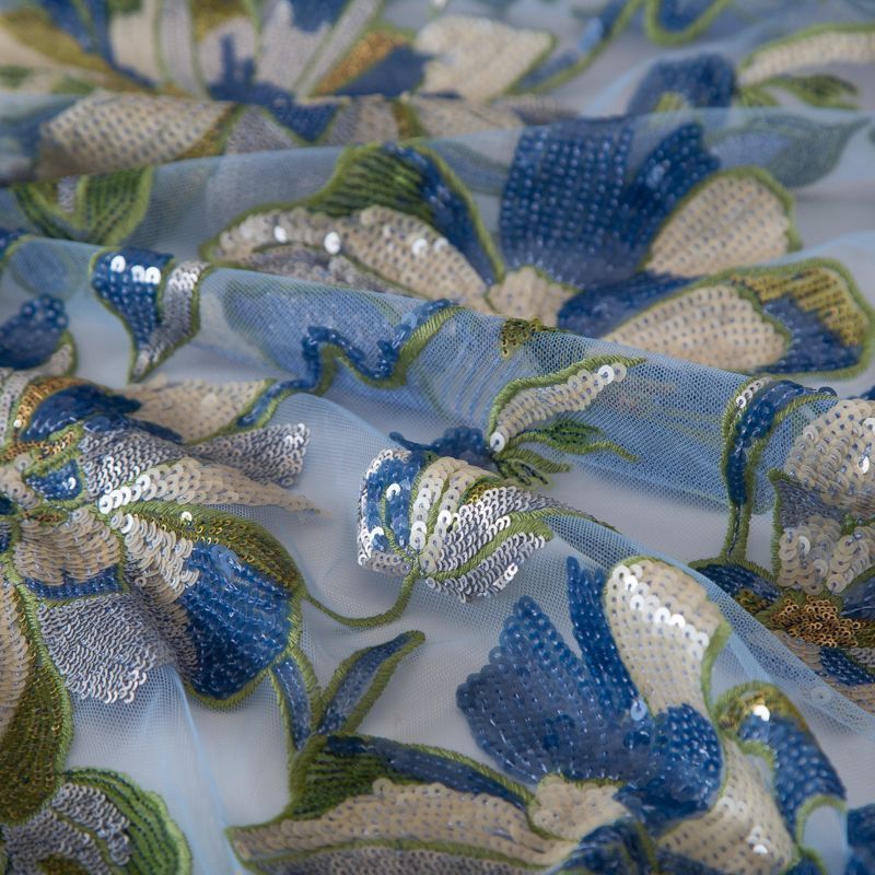Вышивка на сетке Giambattista Valli 055-19320 голубой в Норильске
