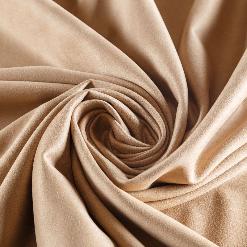 Плотное полотно с мягкой поверхностью, имитирующее замшевую фактуру с матовым ультракоротким ворсом. Комфортный материал достаточно пластичен, тянется за счет эластана в составе, отлично держит форму. Одежда из замши очень уютная и приятная на ощупь, хорошо облегает фигуру. Прекрасно подойдет для пошива платья, брюк, юбок, костюмов, тренчей и жакетов.