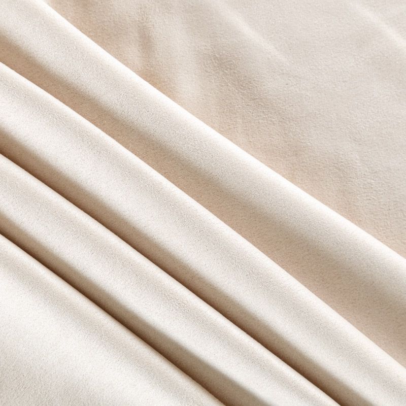 Плотное полотно с мягкой поверхностью, имитирующее замшевую фактуру с матовым ультракоротким ворсом. Комфортный материал достаточно пластичен, тянется за счет эластана в составе, отлично держит форму. Одежда из замши очень уютная и приятная на ощупь, хорошо облегает фигуру. Прекрасно подойдет для пошива платья, брюк, юбок, костюмов, тренчей и жакетов.